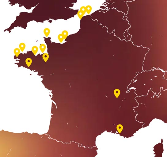 Calais / Eurotúnel, Dunkerque, Caen, Cherburgo, Boulogne-sur-Mer, Roscoff, El Havre, Saint-Malo